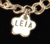 Every charm in this collection is individually hand-stamped and hand-tarnished with a name, message, or symbol. The charms are all Fair Trade Thai Silver containing 99.9% silver, with a brushed finish. Different shaped charms can be combined into one necklace, and other charms may be added as well. The hand-crafted personalization of these charms means that the lettering will not be perfectly straight, and every charm will be unique. Necklace charms are strung on a 16” or 18” sterling silver bead chain with a Thai silver spacer bead in between each charm. Different length chains may be custom ordered. Bracelet charms are set on 7” or 8” sterling silver charm or toggle bracelets.